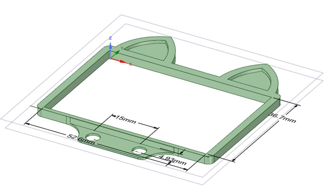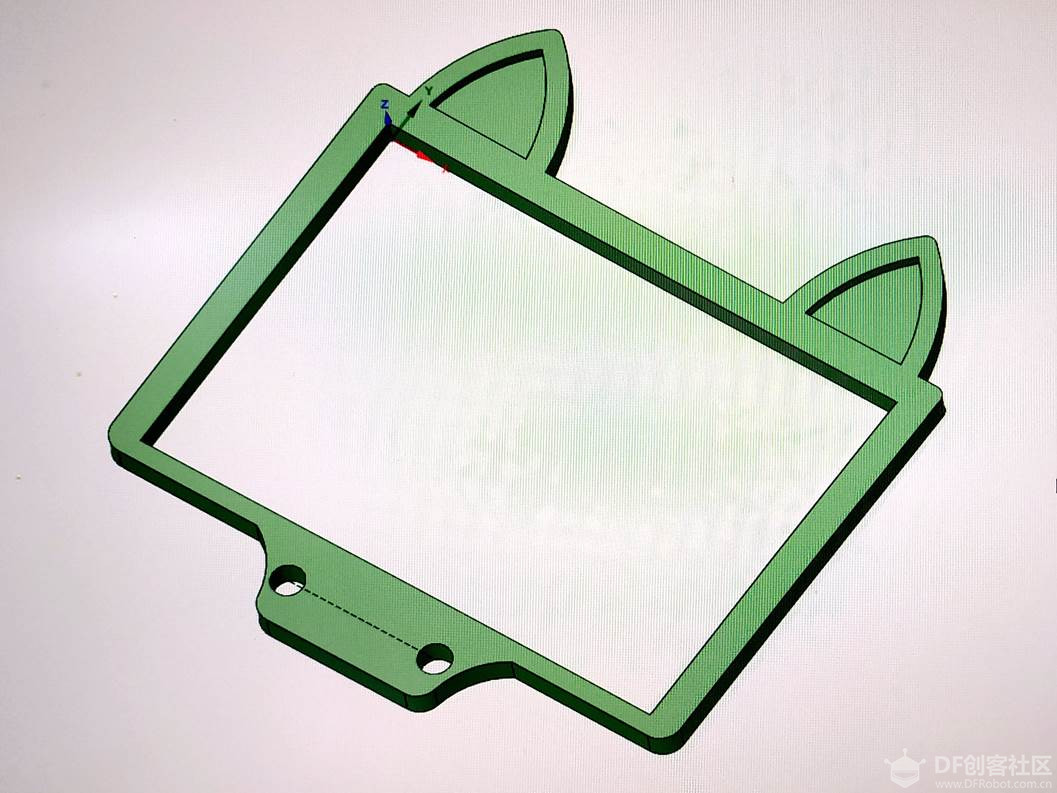 第一个版本预留旷量太大,四周有间隙,不美观。这是打印出来的第二个版本的二哈头套,屏幕边框贴合恰到好处,但看着感觉耳朵小了点。