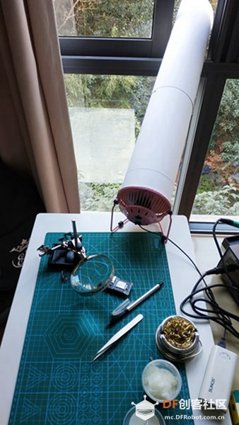 ![]() 一根纸卷引发的大工程前阵子收到春节宅家小创马的奖品,TinkerNode NB-IoT物联网开发板。为了满足不同作品需求,排针的焊接需要自助,由于我准备上扩展板,所以焊接这步跑不掉的。 先不说焊烟的毒害,起码味道太难闻了。所以以往焊接时,我都是憋气操作,虽然有助于提升内力,但毕竟很辛苦。那天开了个脑洞,不如用纸卷和抽奖来的USB小风扇做了个烟道?
