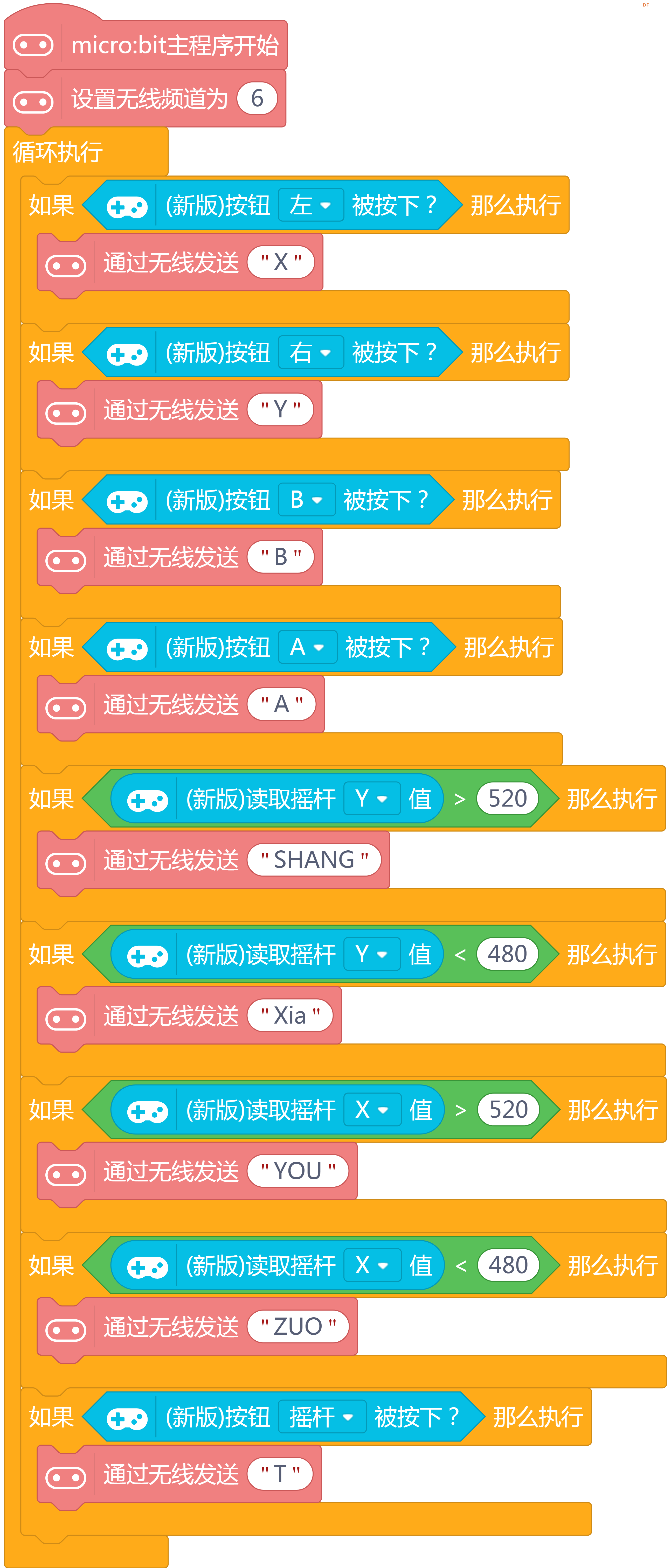 任务说明设计程序,实现游戏手柄或红外遥控器控制麦昆运动。 ![]() 可选成员: